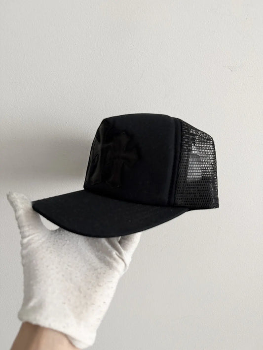 Chrome Hearts Triple Black Leather Patch Trucker Hat